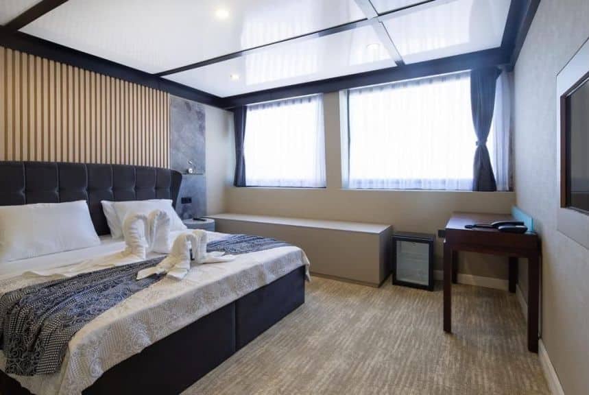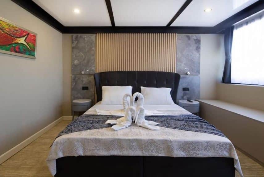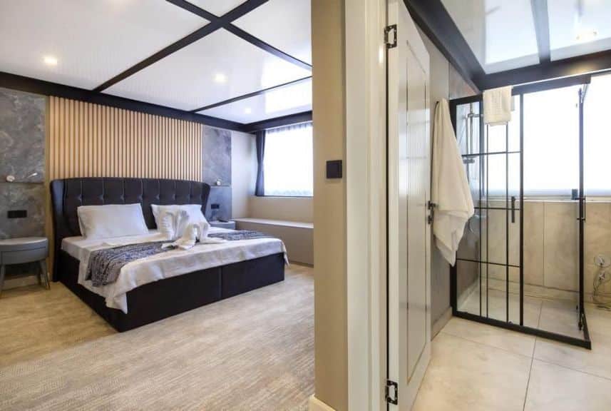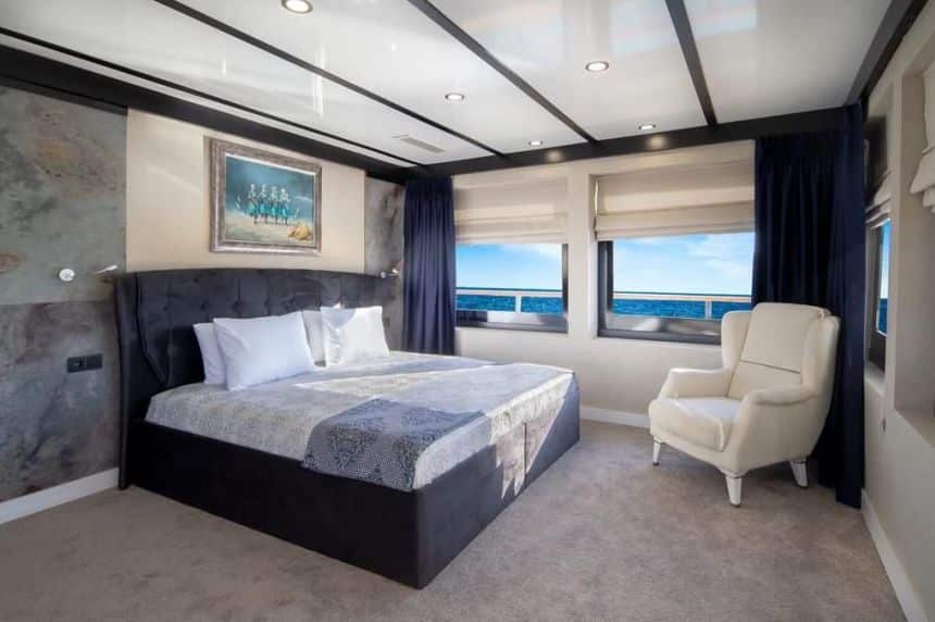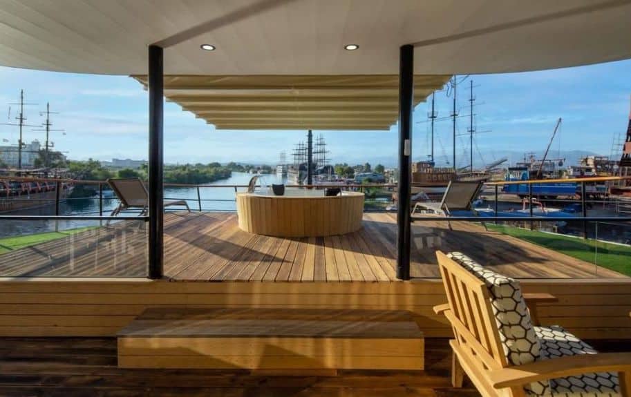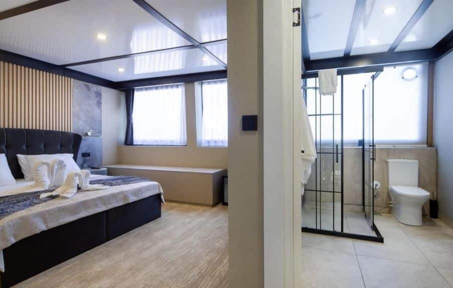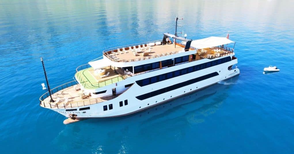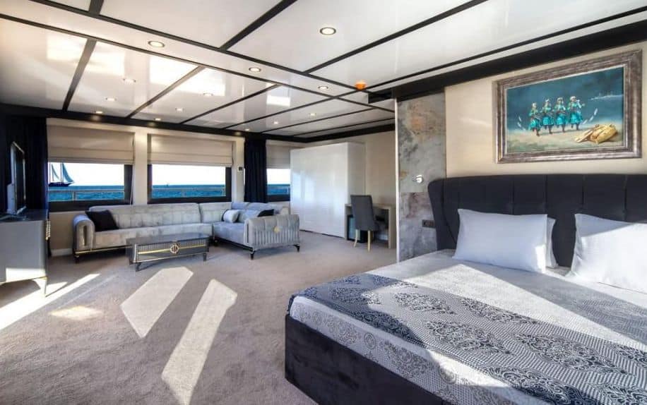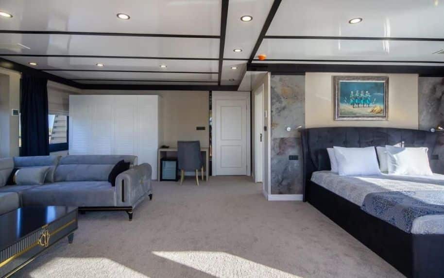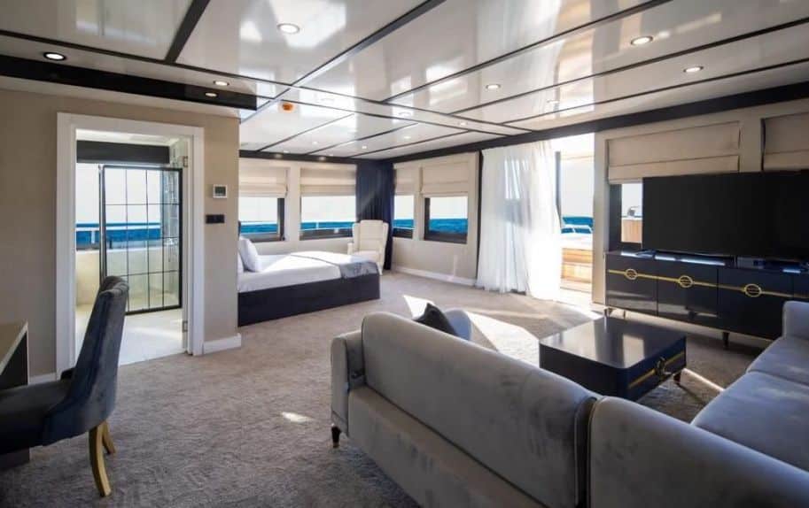 With a unique design, spacious living spaces and an elaborate upper deck, the Limitless Yacht Charter is an elegant boat that offers guests an unforgettable experience. Featuring 13 cabins that can accommodate up to 26 guests, this yacht has a total area of 1650 square meters, 3 floors and 10.5 meters beam with 4 decks. In addition, it offers great facilities such as Turkish bath and massage room so you can relax from your busy life in the outside world. With her beautiful decoration and excellent equipment, this luxury yacht is one of the best choices for your vacation period.