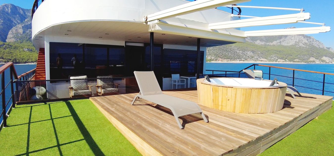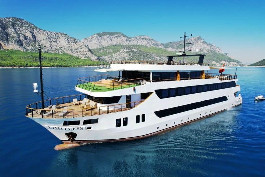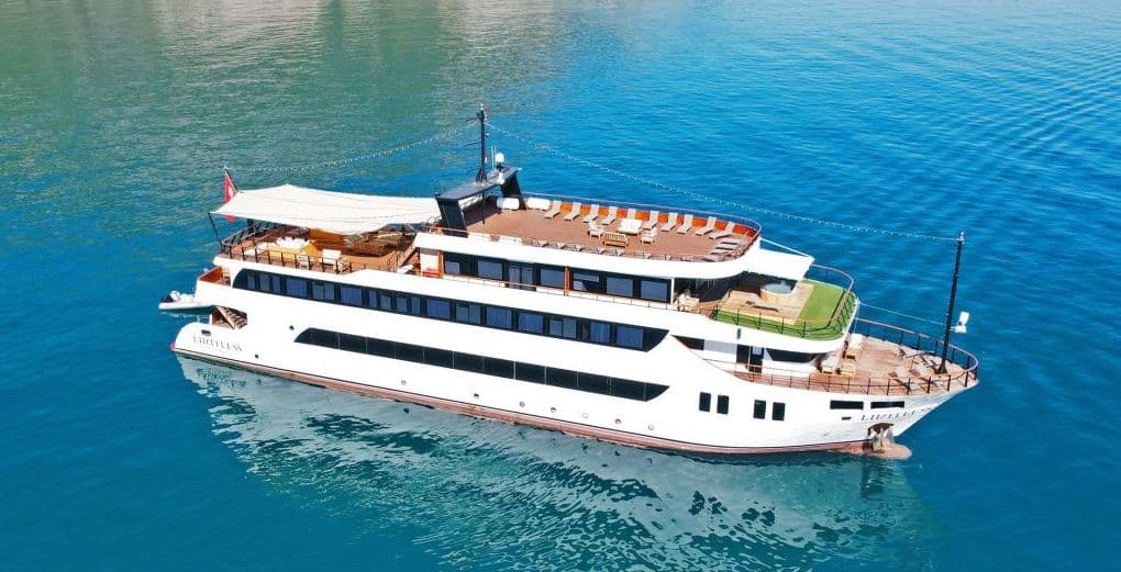Limitless yacht is a special option for your large groups. The limitlesness yacht, refitted in 2022, is 56 meters long, 10.5 meters beam, 4 floors and has a total area of 1650 square meters. She offers luxuary accommodations in 14 cabins for 20 people. With her unlimited amenities and profesional crew. Limitless yacht has great facilities where you can relieve all the stress of the outside world with her Turkish bath, massage room and sauna.
