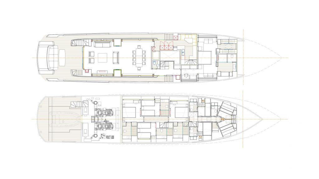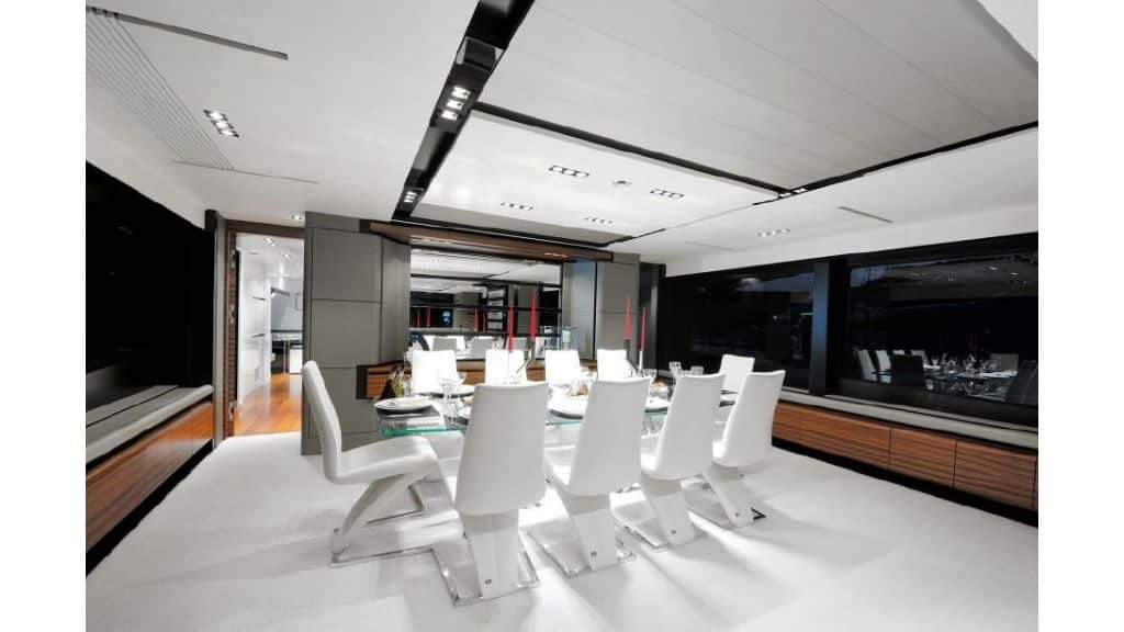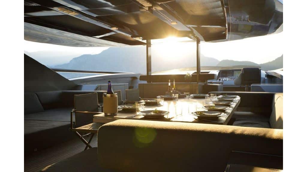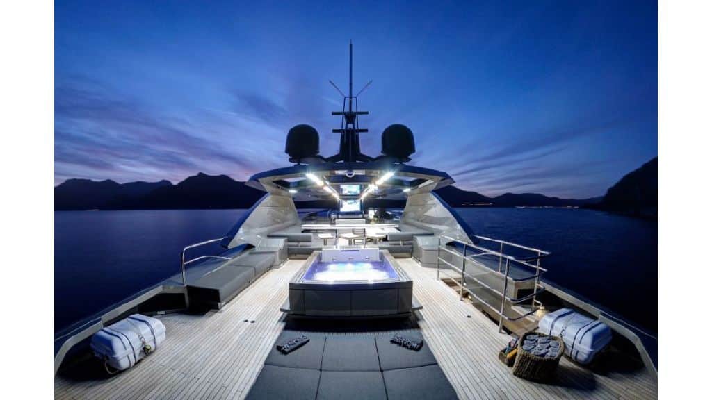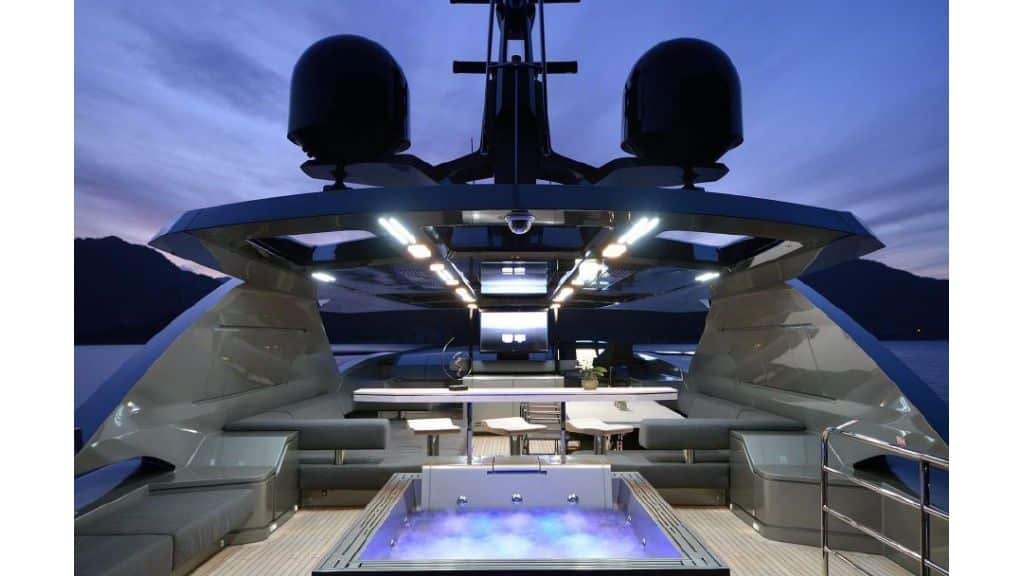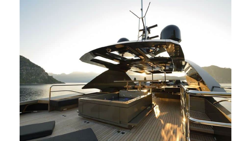 The FX38 motor yacht with a length of 38 meters and 5 cabins offers the pleasure of a jacuzzi in the flybridge area. Enjoy the jacuzzi during the day or in the evening. With her variety of water sports, she provides good opportunities for every guest looking for difference and entertainment.