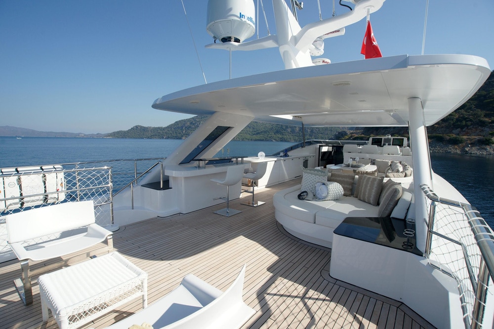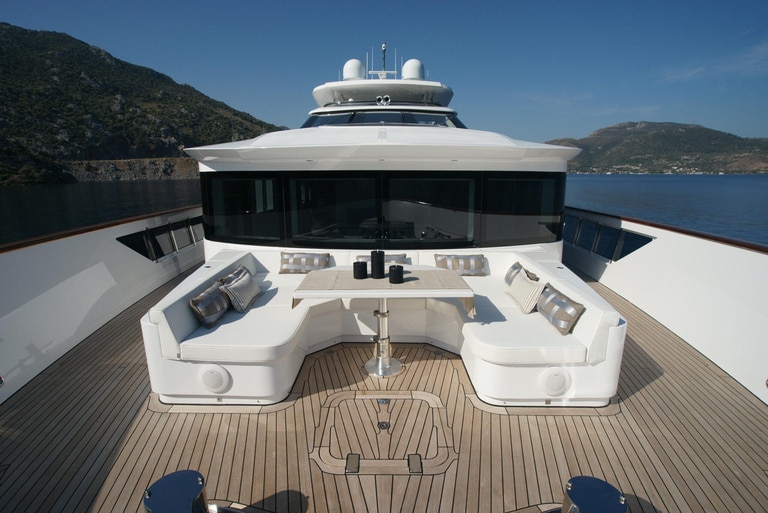 Launched in 2015, she offers an abundance of features for the discerning charterer. It’s sleek semi-displacement steel hull allows comfortable and efficient cruising at 13 knots, with stabilisers which work whilst cruising and at anchor, for maximum comfort. No detail was excluded when Karatas Yacht Design put their attention into both the exterior and interior of this yacht, and the result is stunning.