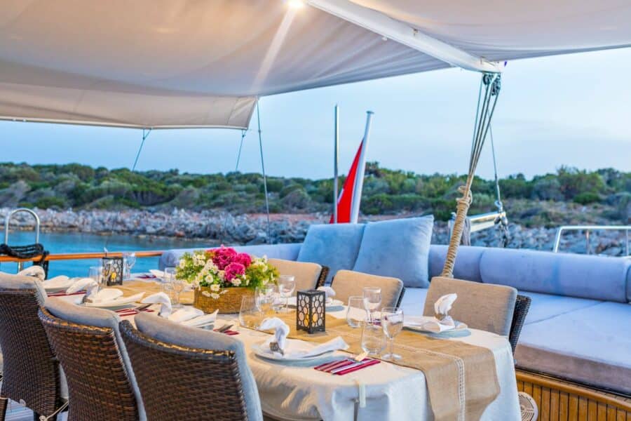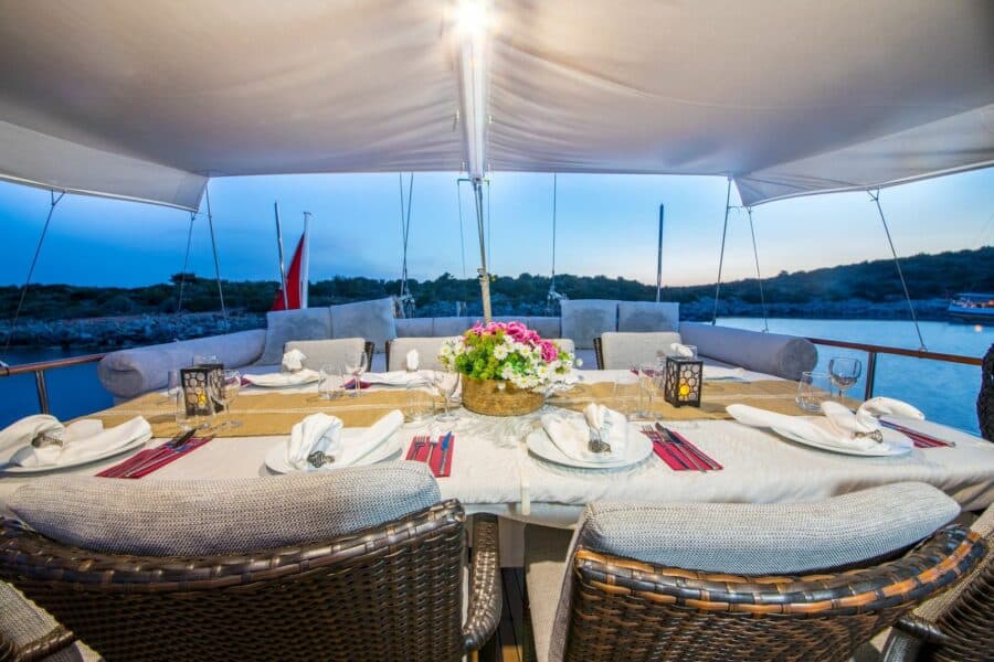 Plan your own itinerary and explore any destination of your choosing – take advantage of exclusive, free moorings that only our gulets can access in idyllic locations beyond the reach of traditional cruisers. – Enjoy onboard luxuries such as delicious meals prepared by the chef, or simply relax under the stars during an unforgettable evening in remote anchorages – Experience the perfect mix of adventure and relaxation for a once in a lifetime trip