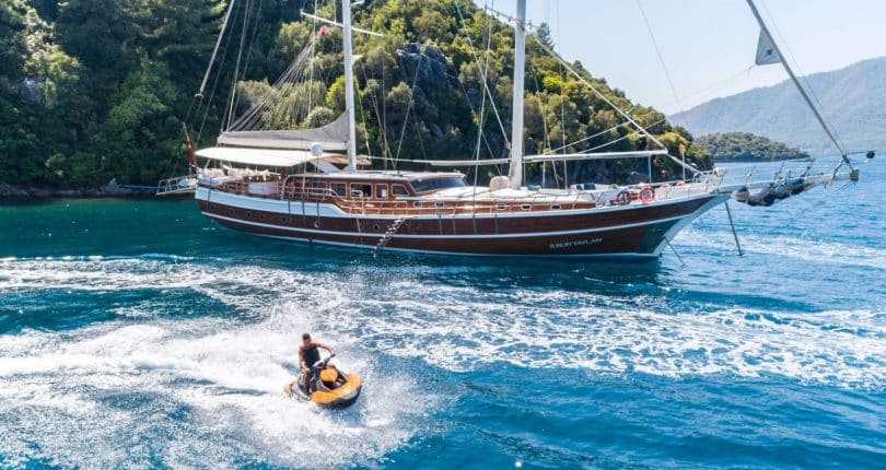 The S Nur Taylan gulet offers a great selection of water toys. What sets her apart from all other gulets in her class is her beautifully hand-carved detail throughout by expert craftsmen. She boasts very wide and spacious living areas in light and soft color scheme. The saloon offers well appointed open space with large windows giving plenty of natural light to come through. This fine gulet is served by an adaptable, energetic and professional crew of 5 or 6 managed by Captain Salih.