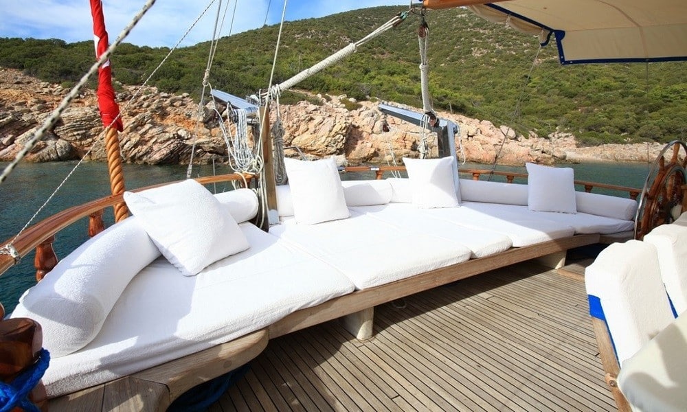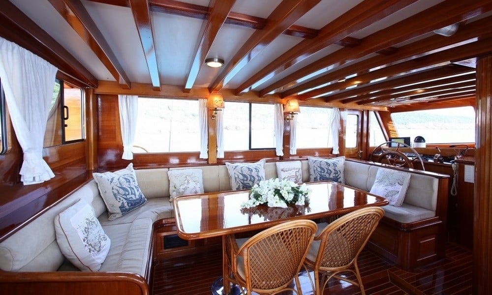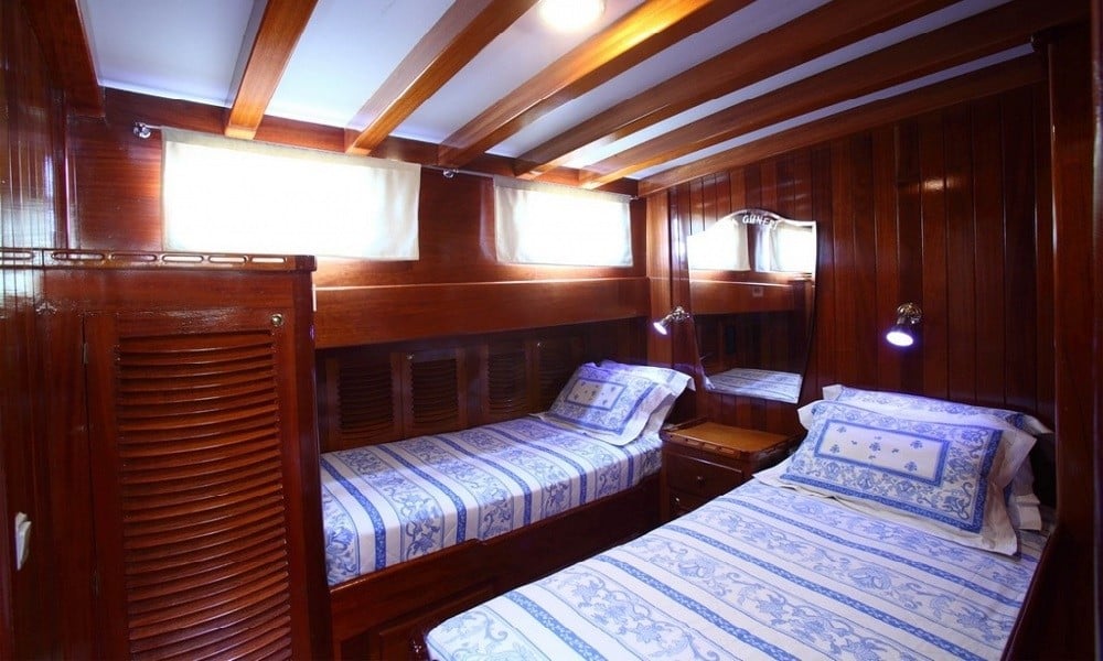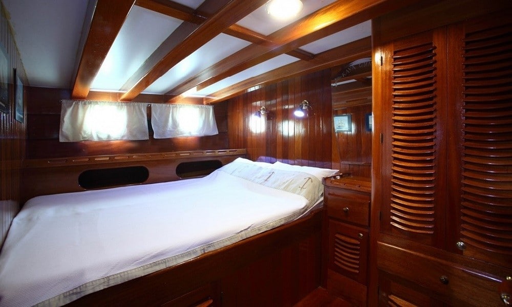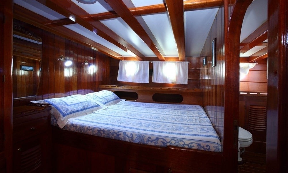 She is 29 meters long and 7 meters broad, and it was launched in 2011. It has been carefully developed for the guests’ comfort and convenience. This wooden gulet, which has eight different rooms, is ready to provide an exciting blue cruise vacation for a total of 16 guests! Cabins are divided into two types: 4 twins and 4 doubles, with internet and air conditioning in each.