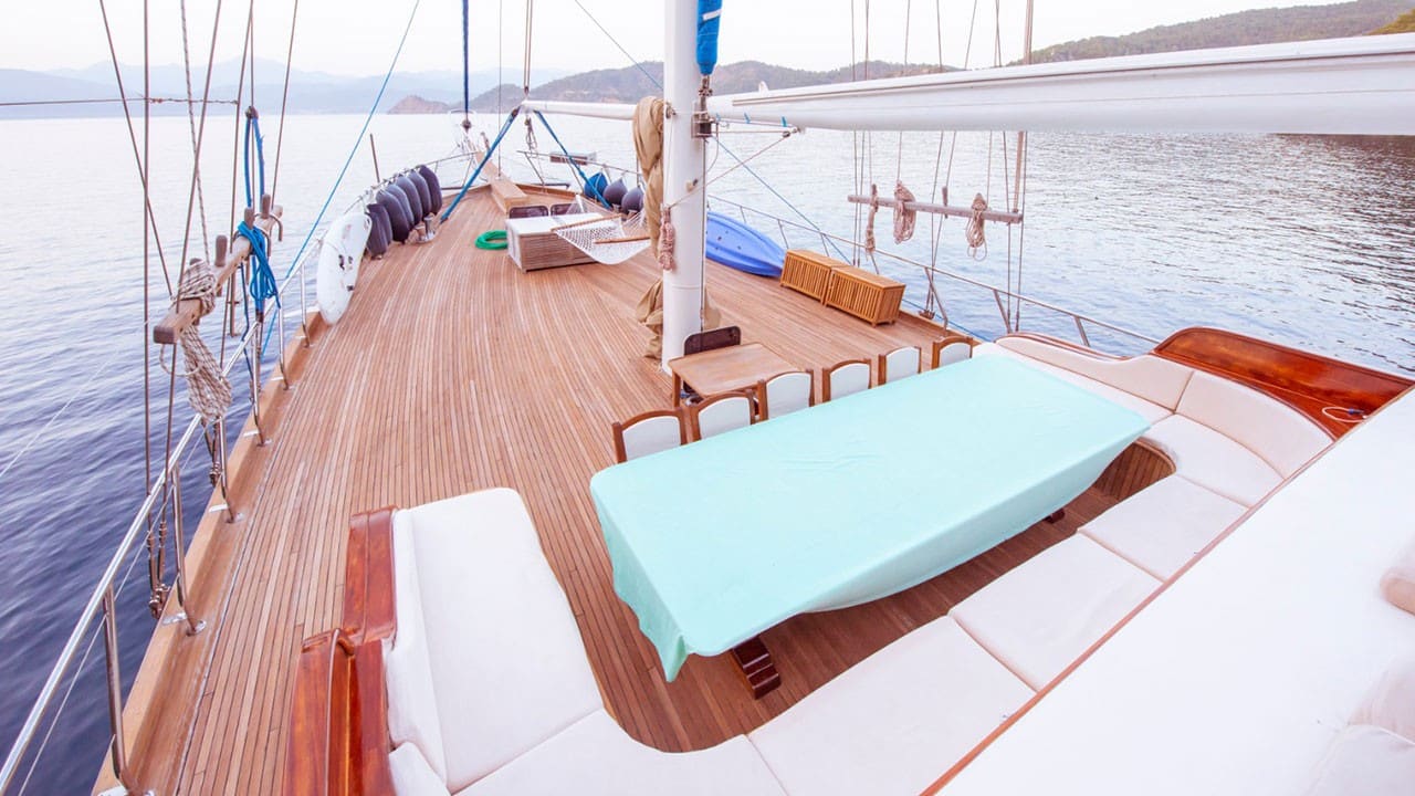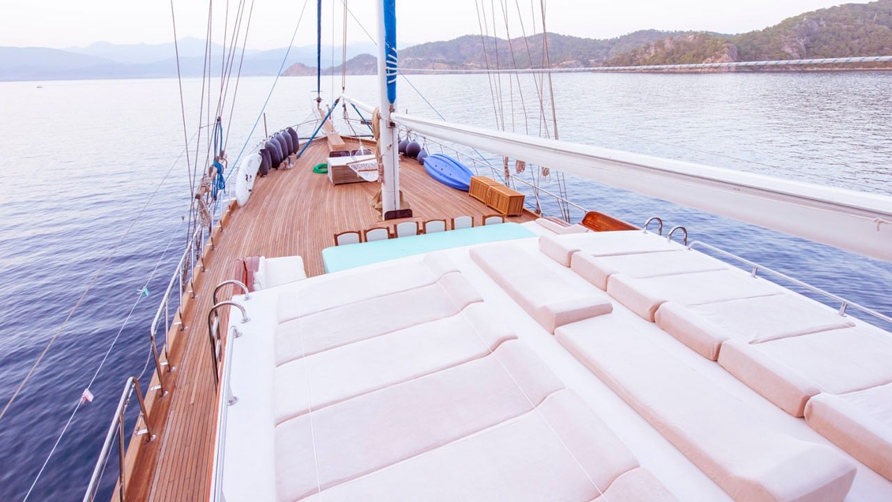 Gulet Larin Su is arranged with enough sunbathing mats and space for all its guests. There is a TV, DVD and music system in the living room.
