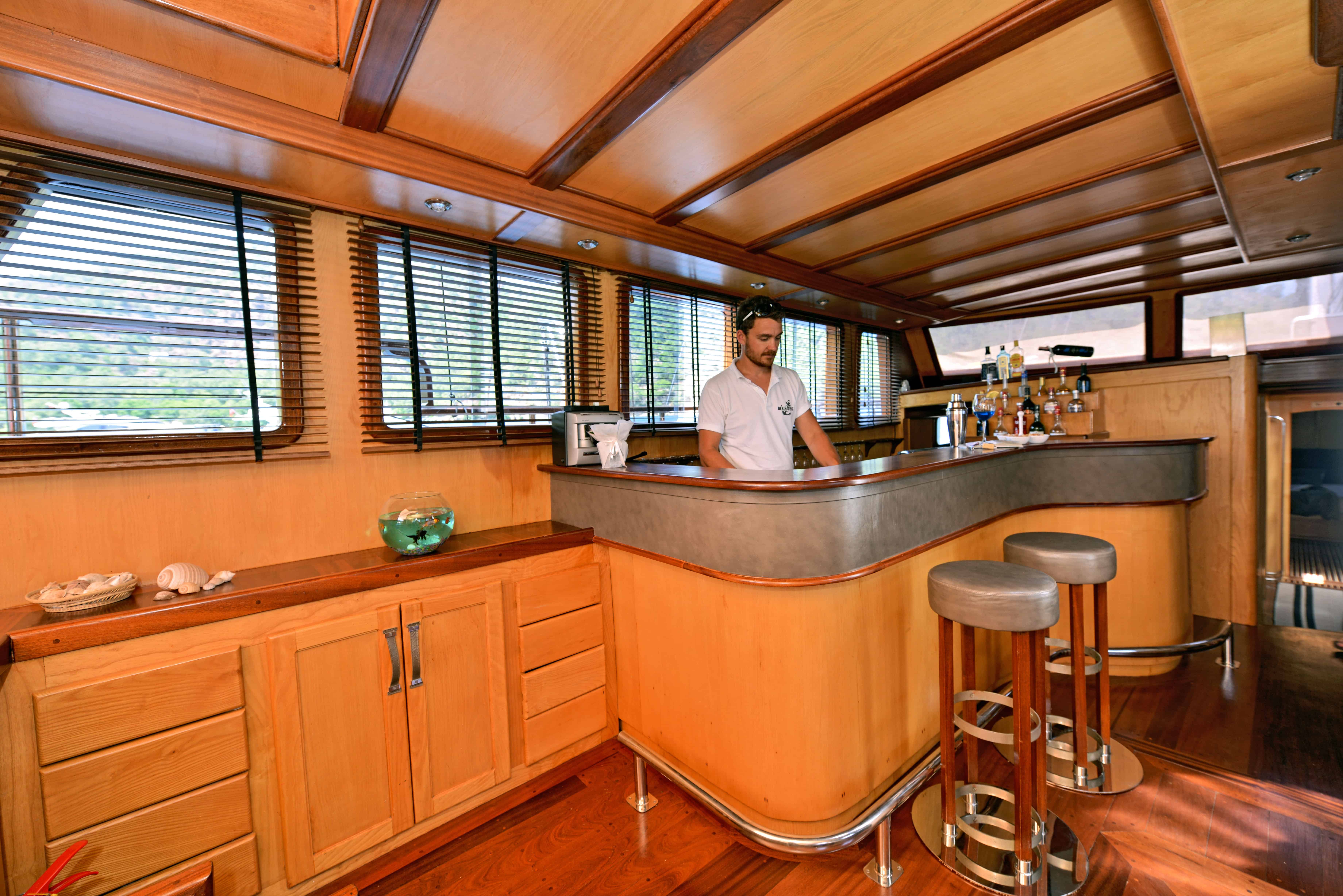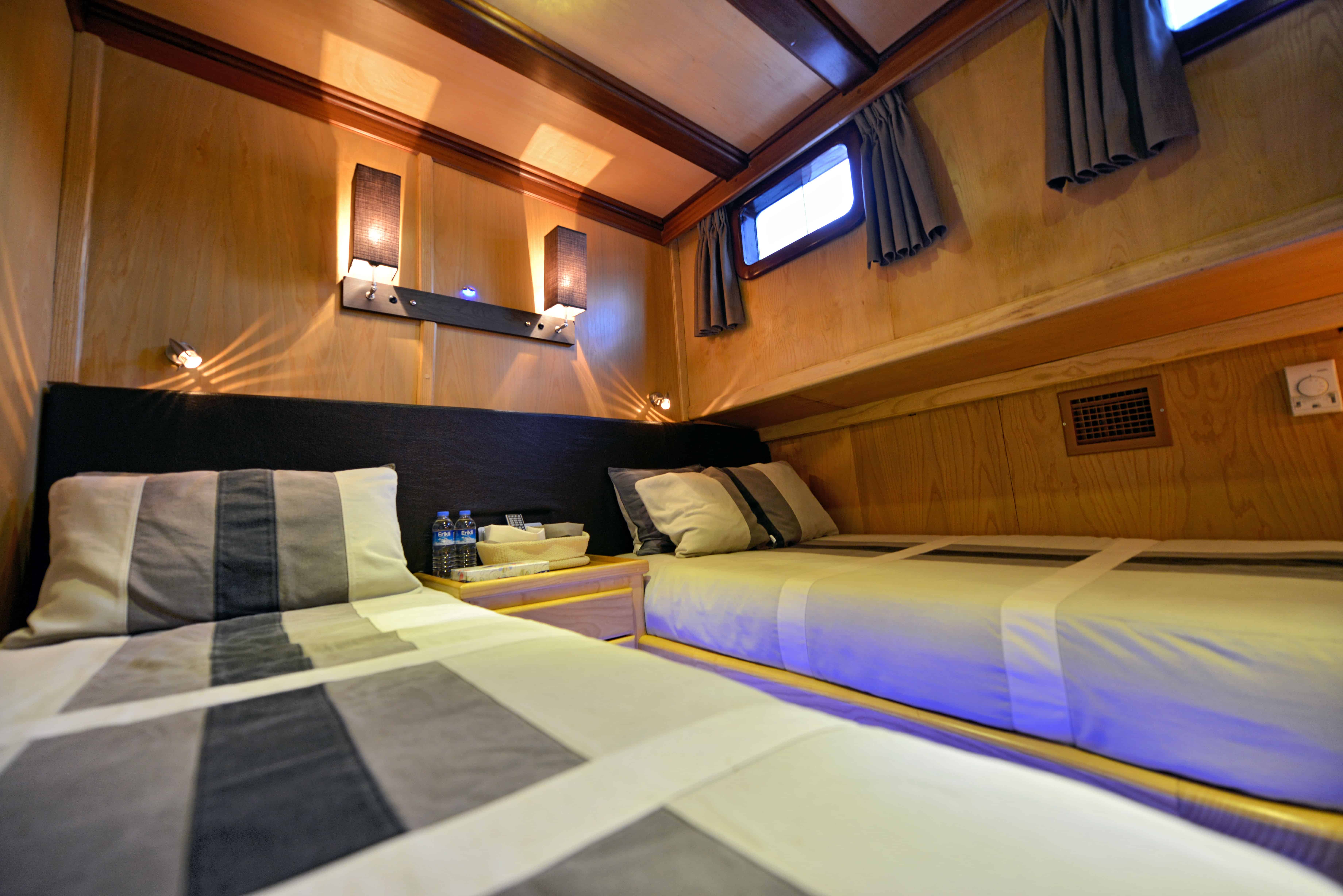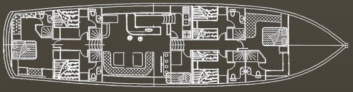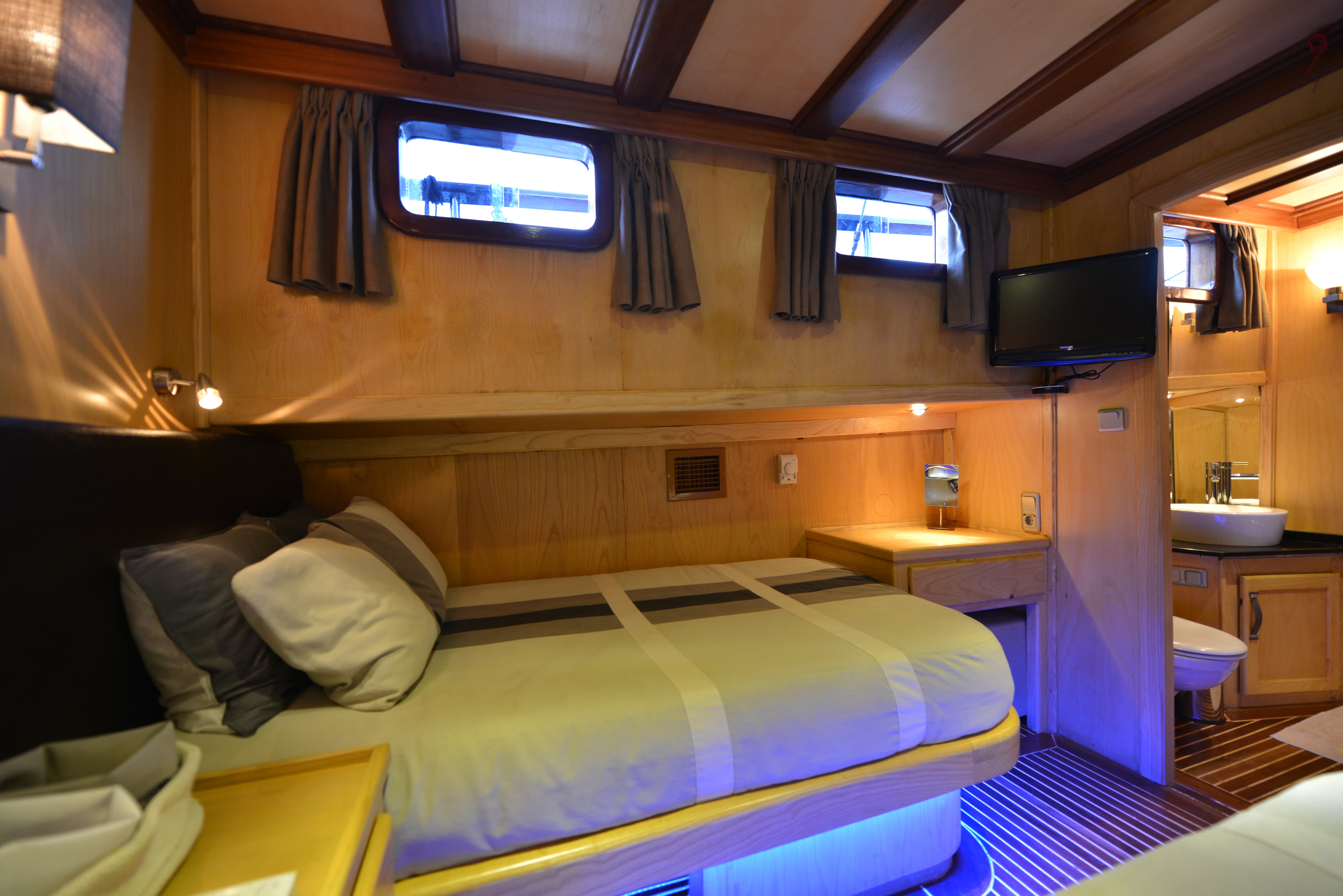 Our yacht has 6 cabins, 2 Master Cabins, 2 Double Cabins, 2 Twin Cabins, each more stylish and comfortable than the other, with its own shower, WC and air conditioning.