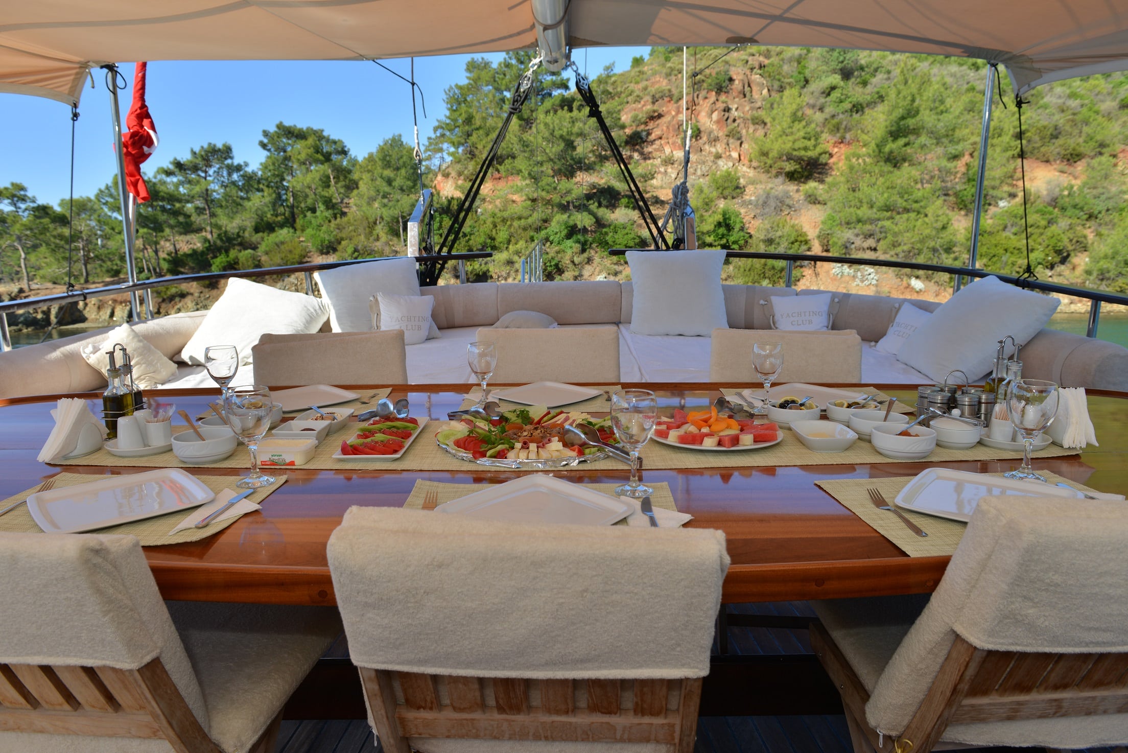 In addition, LCD TV, DVD player, music set are at the service of our valued blue cruise guests in the lounge. In order not to be disconnected from the internet life during the holiday, we have wi-fi internet service valid within the borders of Turkish Waters on our boat. For our guests, optional water sports such as Wake Board, Water Skiing, Ringo, Wind Surf, Canoe are available.