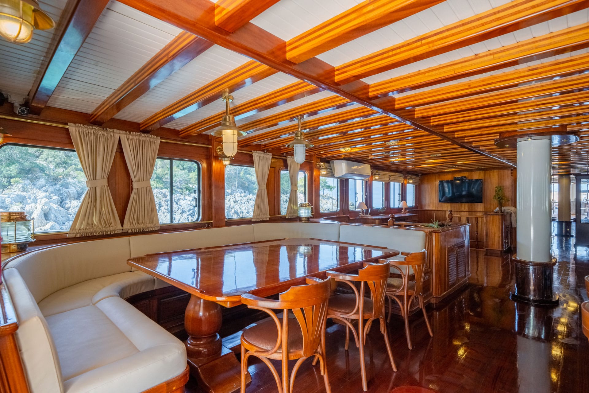 In addition, LCD TV, DVD player, music set are at the service of our valued blue cruise guests in the lounge. In order not to be disconnected from the internet life during the holiday, we have wi-fi internet service valid within the borders of Turkish Waters on our boat.